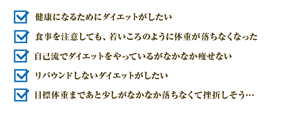 年齢と共に変化する体と腸の状態を整え、健康でスッキリとした身体を手に入れるために、専属の担当者が最後までダイエットをサポートします。